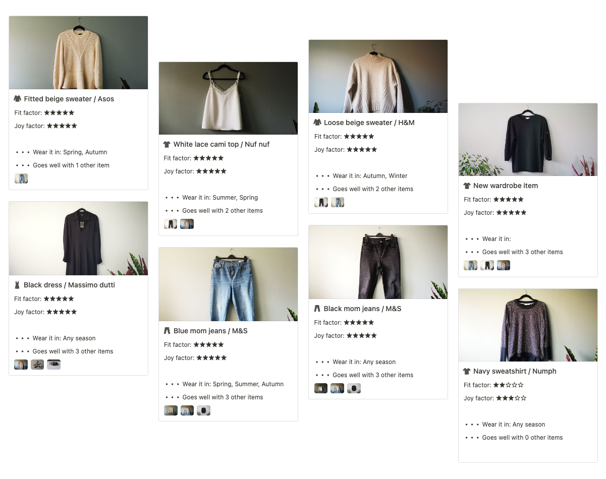 A catalogue for all the things you consider adding to your capsule wardrobe. Use it with Notion webclipper in your browser.