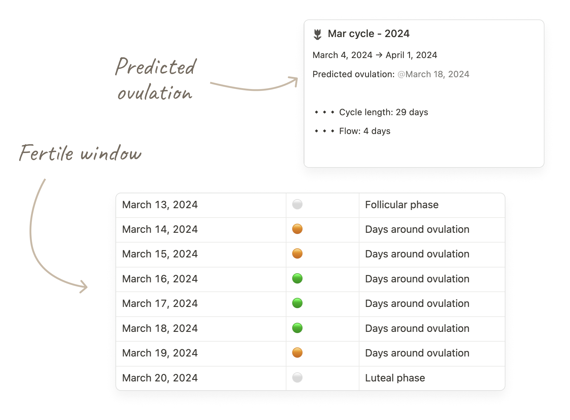 Simple yet very smart period tracking dashboard built in Notion to give you a very comprehensive view of all your cycles - in the past and in the future.