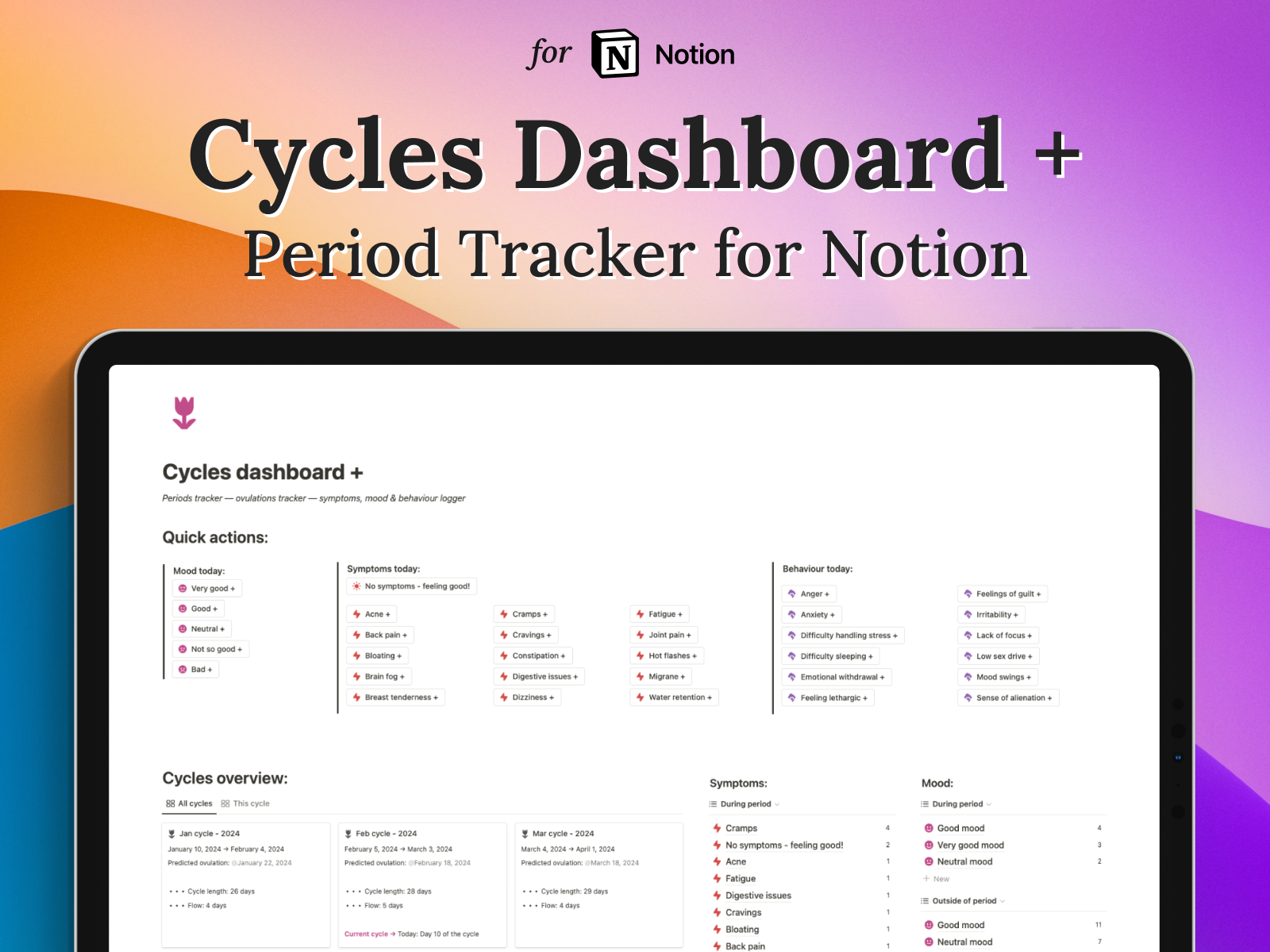 Track your periods, ovulations, and symptoms you experience throughout the cycle